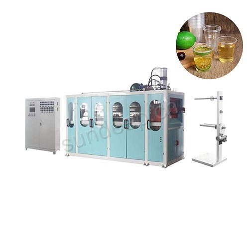 SUND series plastic cup thermoforming machine is applicable for producing various disposable plastic vessels, such as tea cups, yogurt cup, ice cream cups, milk cups, jelly cups, instant noodle bowls, etc, the workable material canbe pp sheet, ps sheet, pet sheet and ABS sheet etc. It can finish producing the product at one time through sheet feeding, heating, stretching, forming and edge cutting.