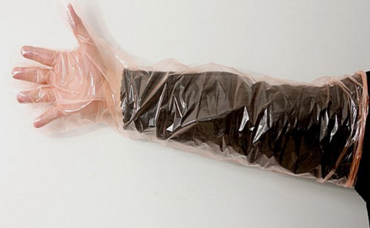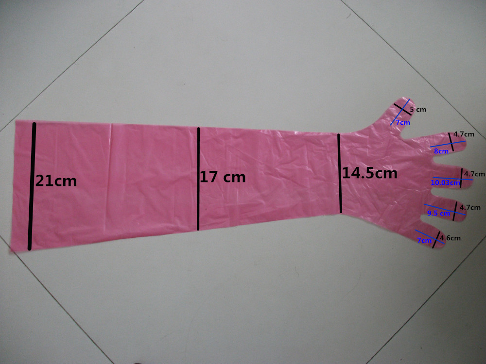 The disposable veterinary glove is used for midwifery, artificial insemination etc.